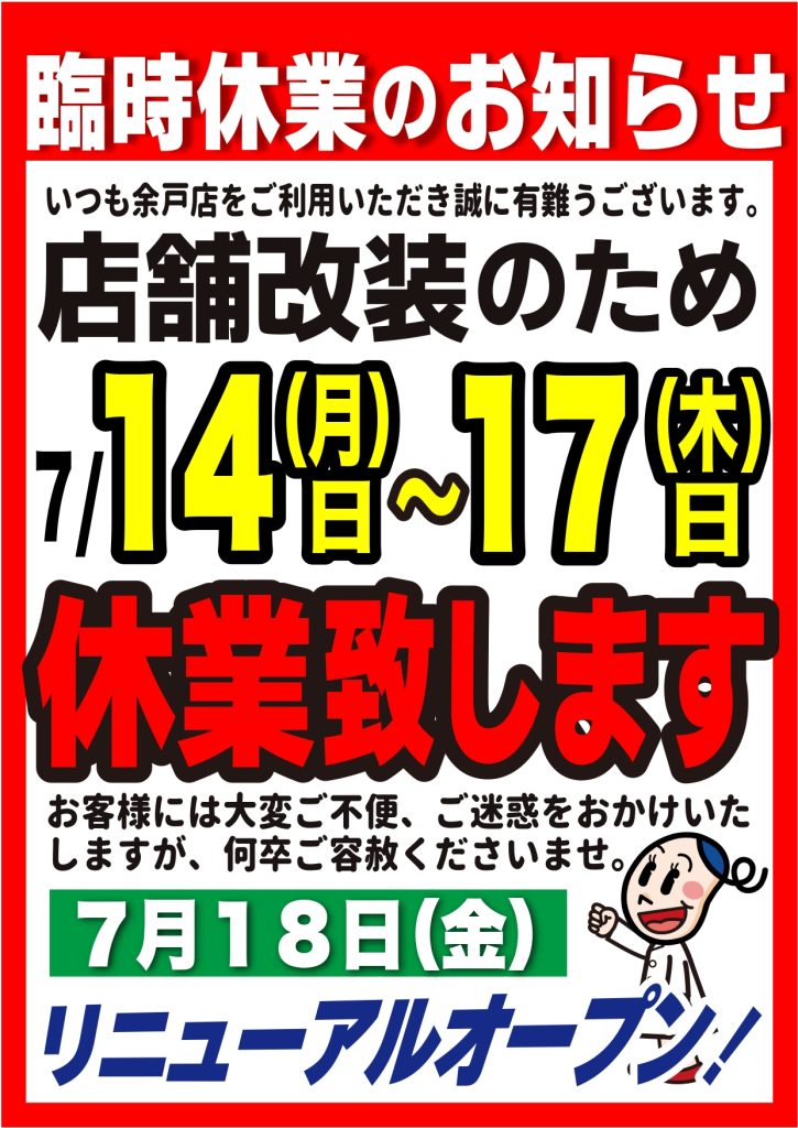 余戸店は改装のため